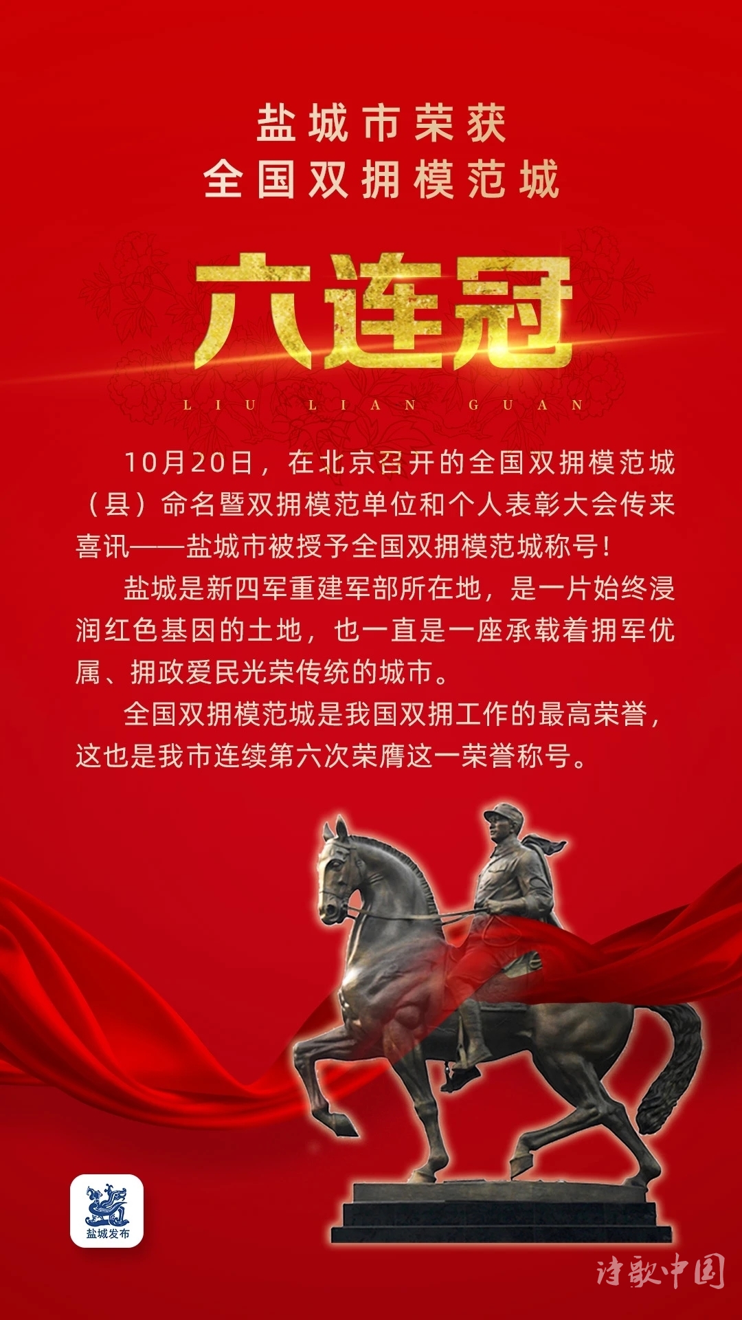 ——杨福江 2020年10月20日有感于盐城市第六次荣获全国双拥模范城光荣称号。