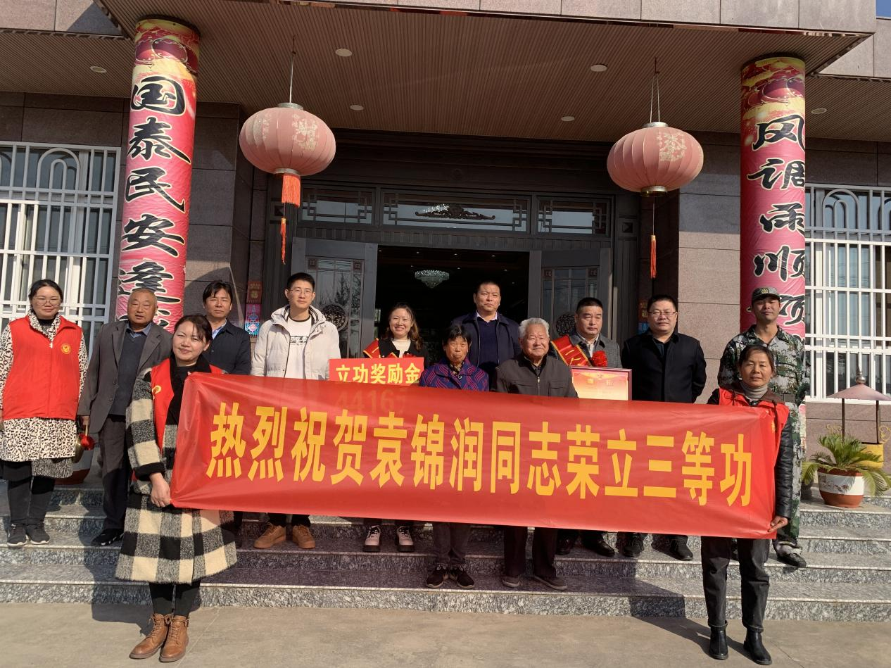 慰问组为军属佩戴红花、绶带并致以热烈的祝贺,通过与军属的亲切交流,详细了解了立功军人在部队的基本情况和军属的生活状况,对军属积极支持军队和国防现代化建设表示崇高的敬意和感谢,希望军属继续鼓励袁锦润同志再创佳绩、再立新功。