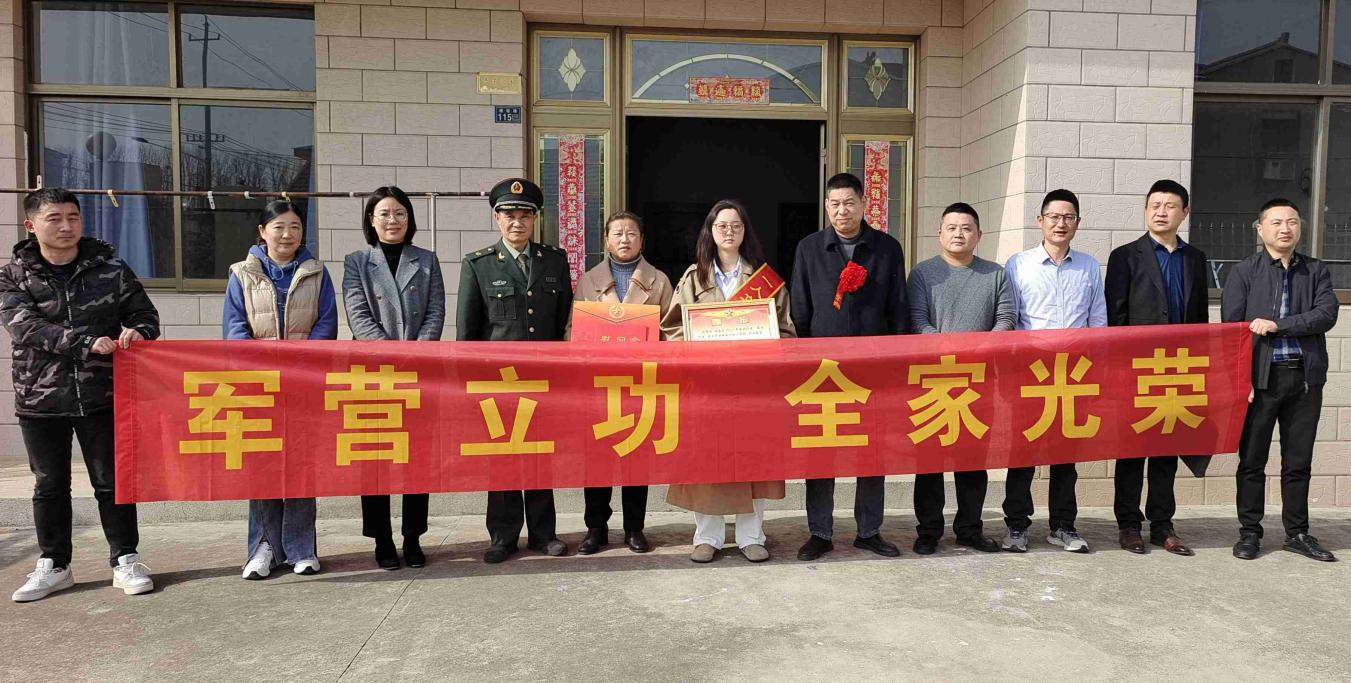 近日,大丰区丰华街道退役军人服务站工作人员来到现役军人沈儒阳家中,为立功军人家庭送上三等功喜报、戴上“一人立功 全家光荣”绶带,向沈儒阳父母致以热烈的祝贺和崇高的敬意。