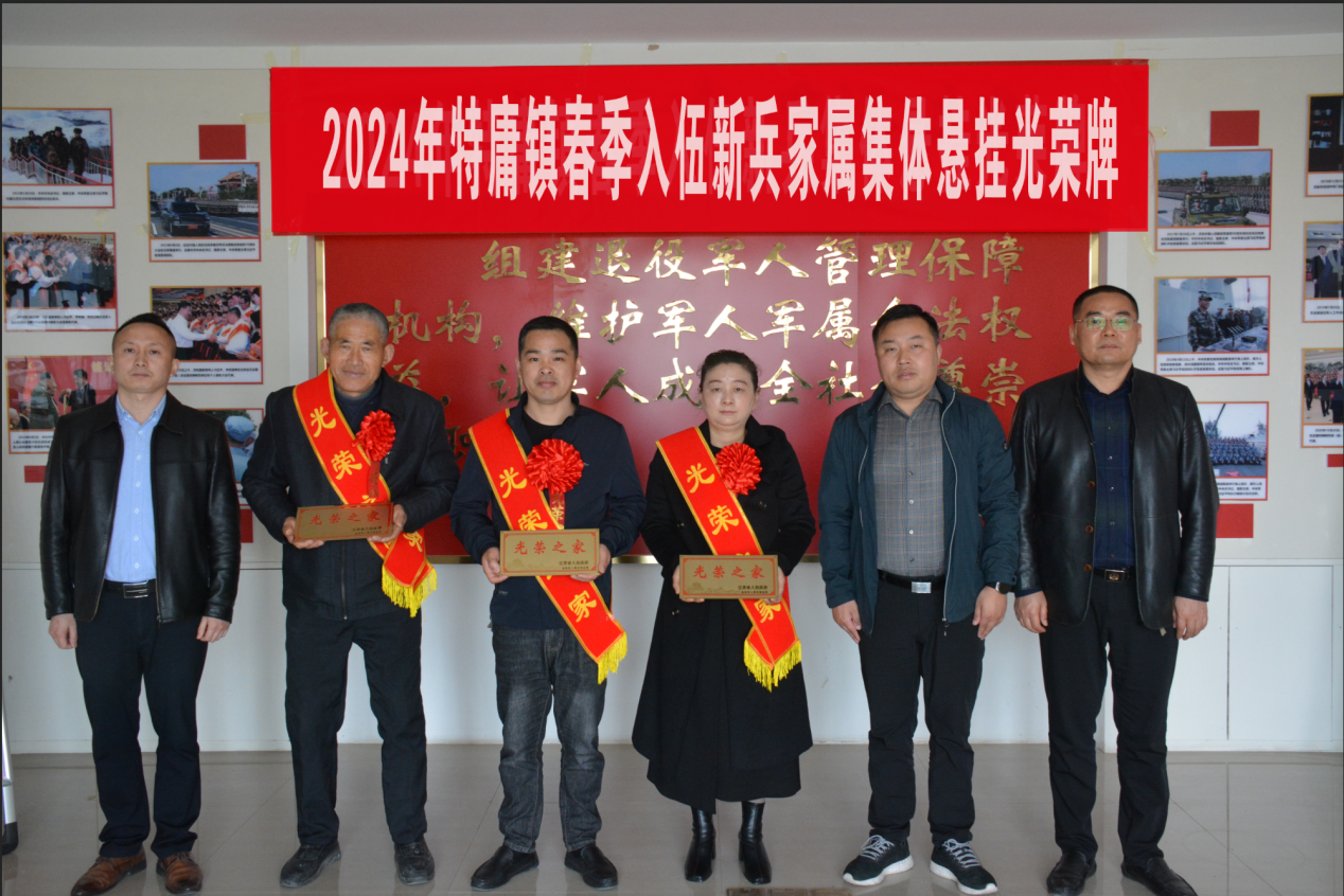 近日,射阳县特庸镇人武部联合退役军人服务站开展2024年春季入伍新兵家属悬挂光荣牌活动,为今年春季人伍新兵家属颁发“光荣之家”牌匾,进一步营造尊崇军人、关爱军属的良好社会氛围。
