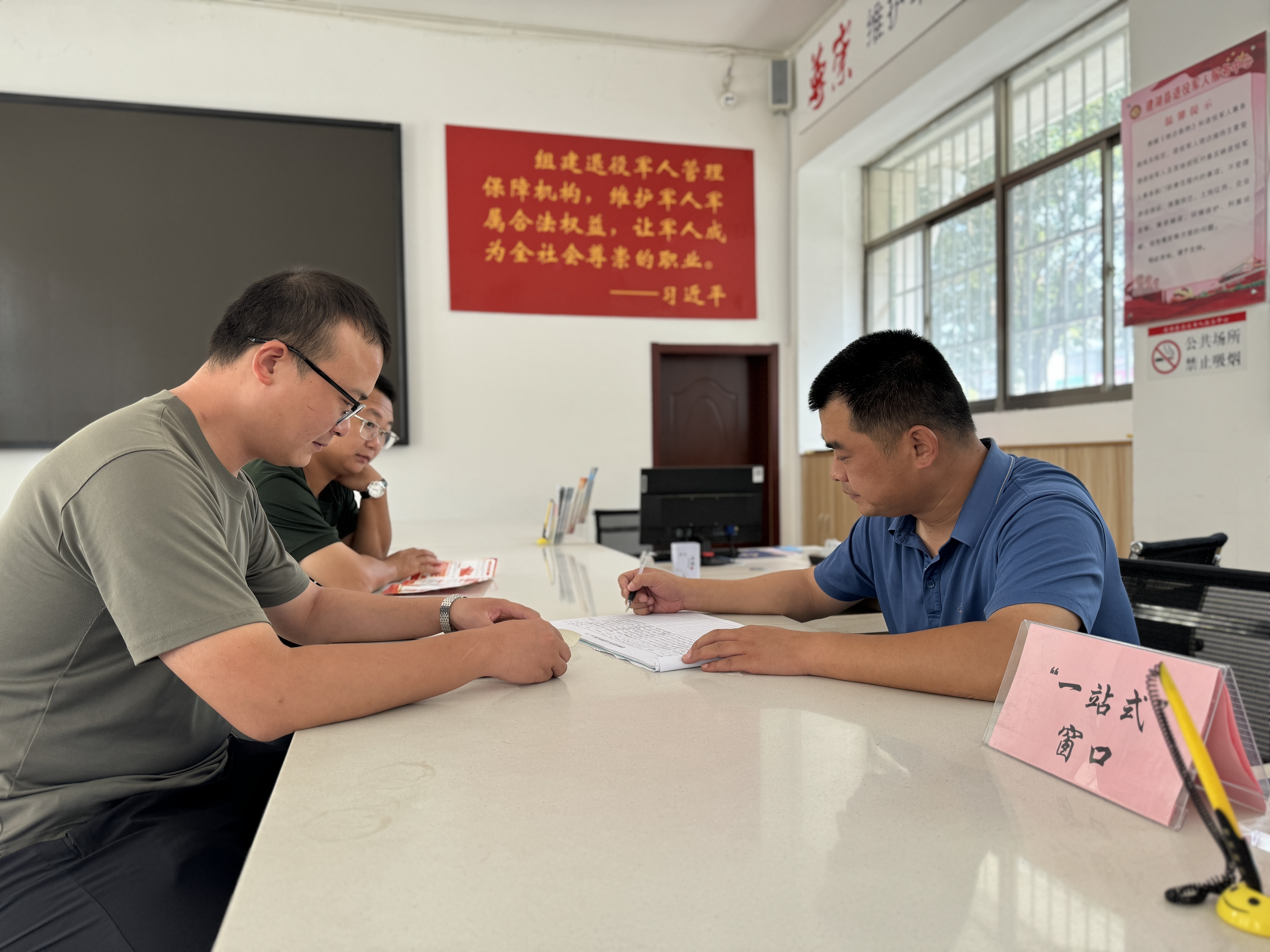 聚力服务保障。落细落实“一站式”服务窗口,提供办理报到落户、党组织关系和社会保险关系接转、预备役登记、优待证办理等快捷服务,为退役士兵办理人身意外保险,让他们切身感受到“家”的温馨。