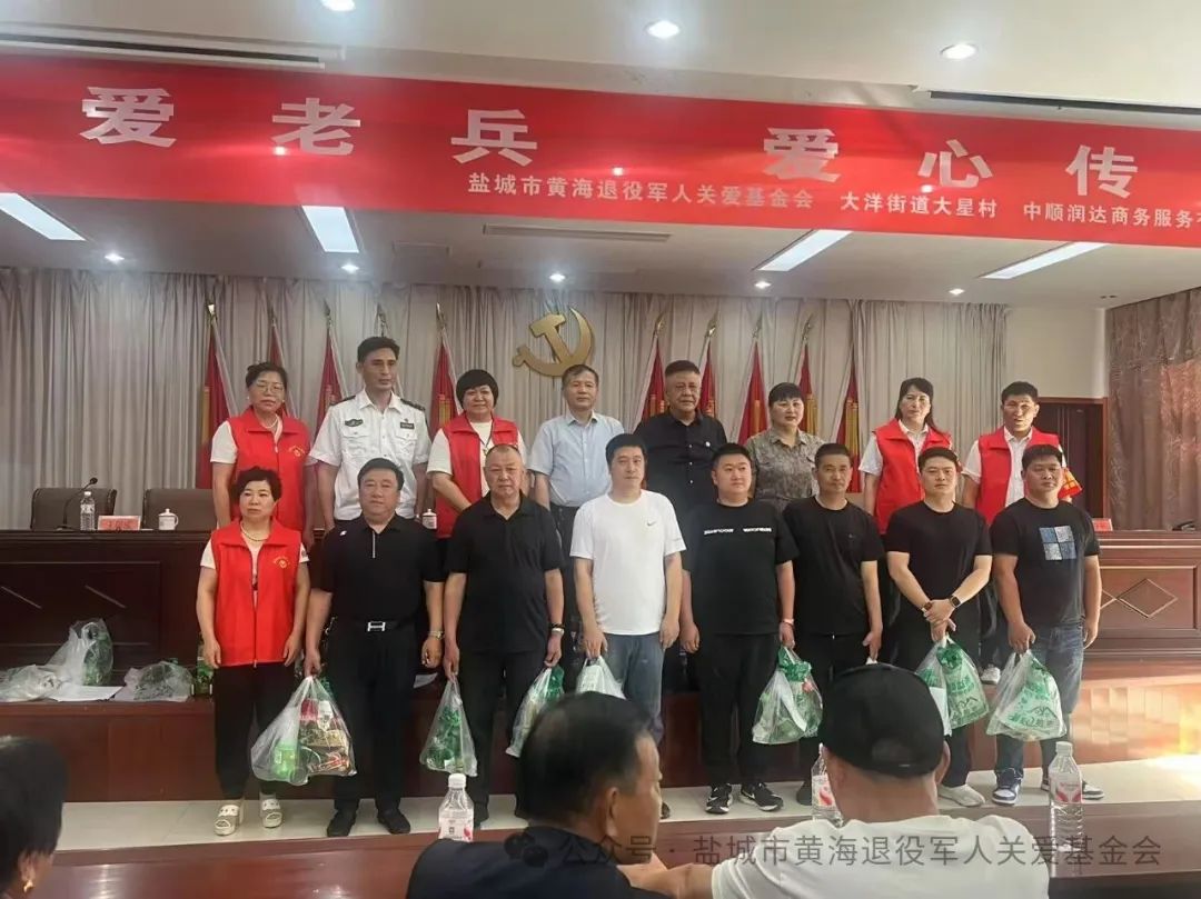 为弘扬拥军优属光荣传统,营造全社会关心关爱退役军人的浓厚氛围,近日,市黄海退役军人关爱基金会携手爱心企业中顺润达商务服务有限公司、德济堂中西医综合诊所,在亭湖区大洋街道大星居委会温情上演“爱心传递”公益捐赠行动。活动为大星居委会的部分退役军人送去黑芝麻糊、洗手液等日常生活用品和消暑物品,并开展公益讲座和义诊活动,用实实在在的关怀与温暖践行尊崇与关爱。