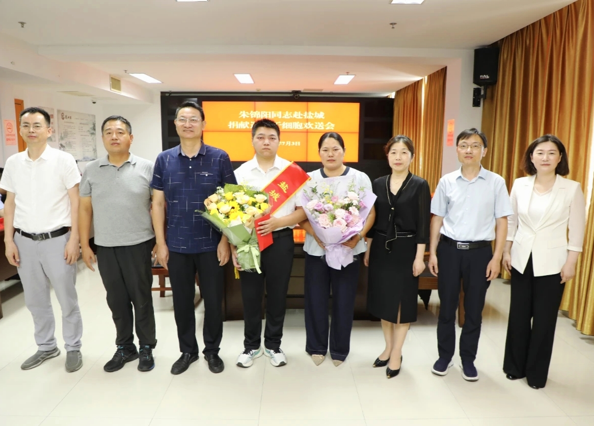 欢送仪式上,与会人员对朱锦阳的大爱义举表示高度赞赏,向其表达崇高敬意和诚挚感谢,同时为他披上爱心大使绶带,并送上鲜花。一个月前,朱锦阳从县红十字会得知自己的干细胞血样与一名白血病患者初配成功的消息,他毫不犹豫作出尽快捐献救人的决定。近期,朱锦阳顺利通过高分辨配型和体检合格等流程,他将于7月14日在盐城第一人民医院为一名白血病患者捐献造血干细胞。他也将成为阜宁县第7例造血干细胞捐献者,同时也是该县首位“00后”退役军人捐献者。