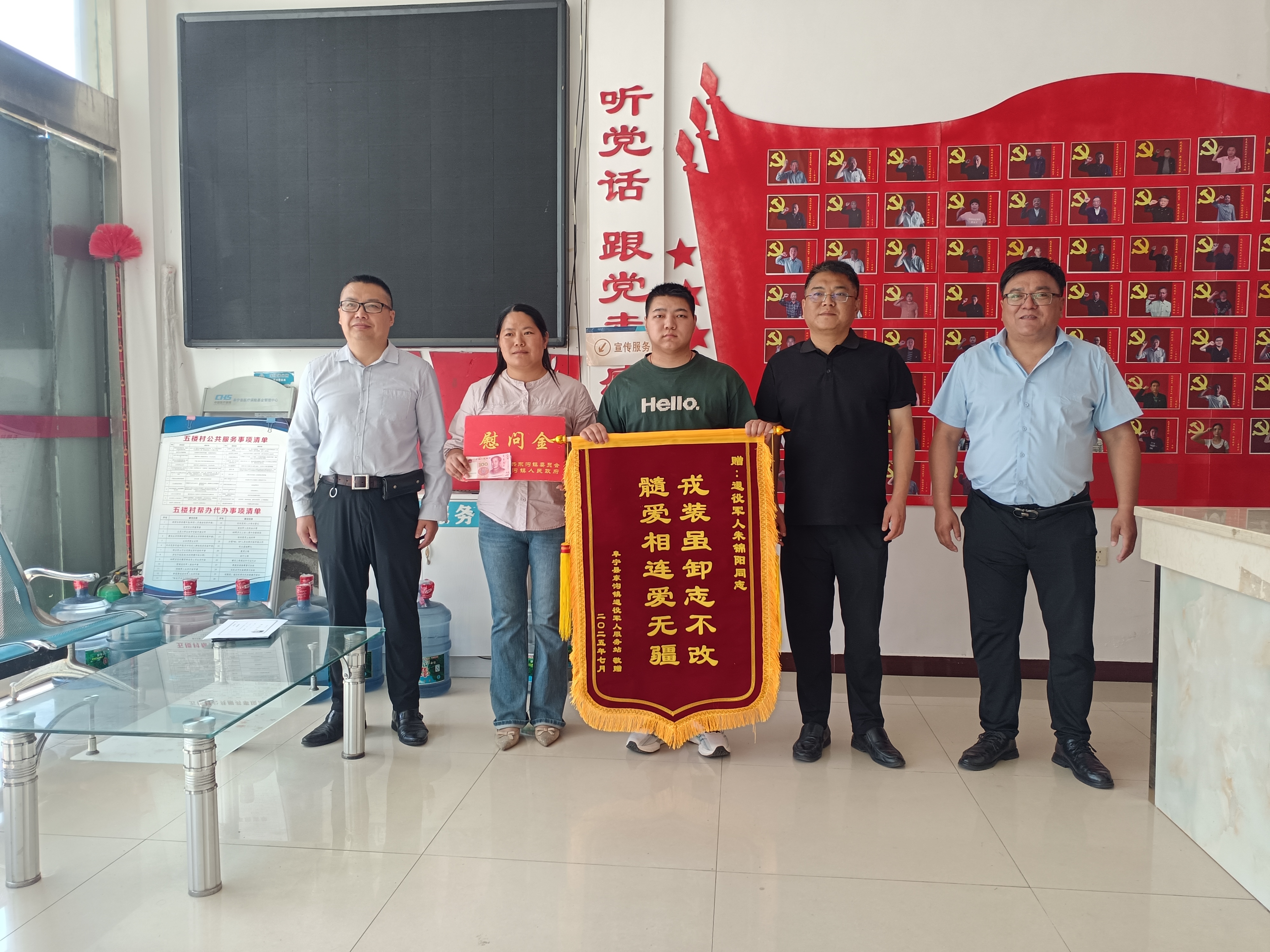 近日,阜宁县东沟镇退役军人服务站“八一”慰问工作组走进该镇五楼村,向不久前捐献造血干细胞的退役军人朱锦阳致以节日的慰问,表达党委政府的关心关爱。