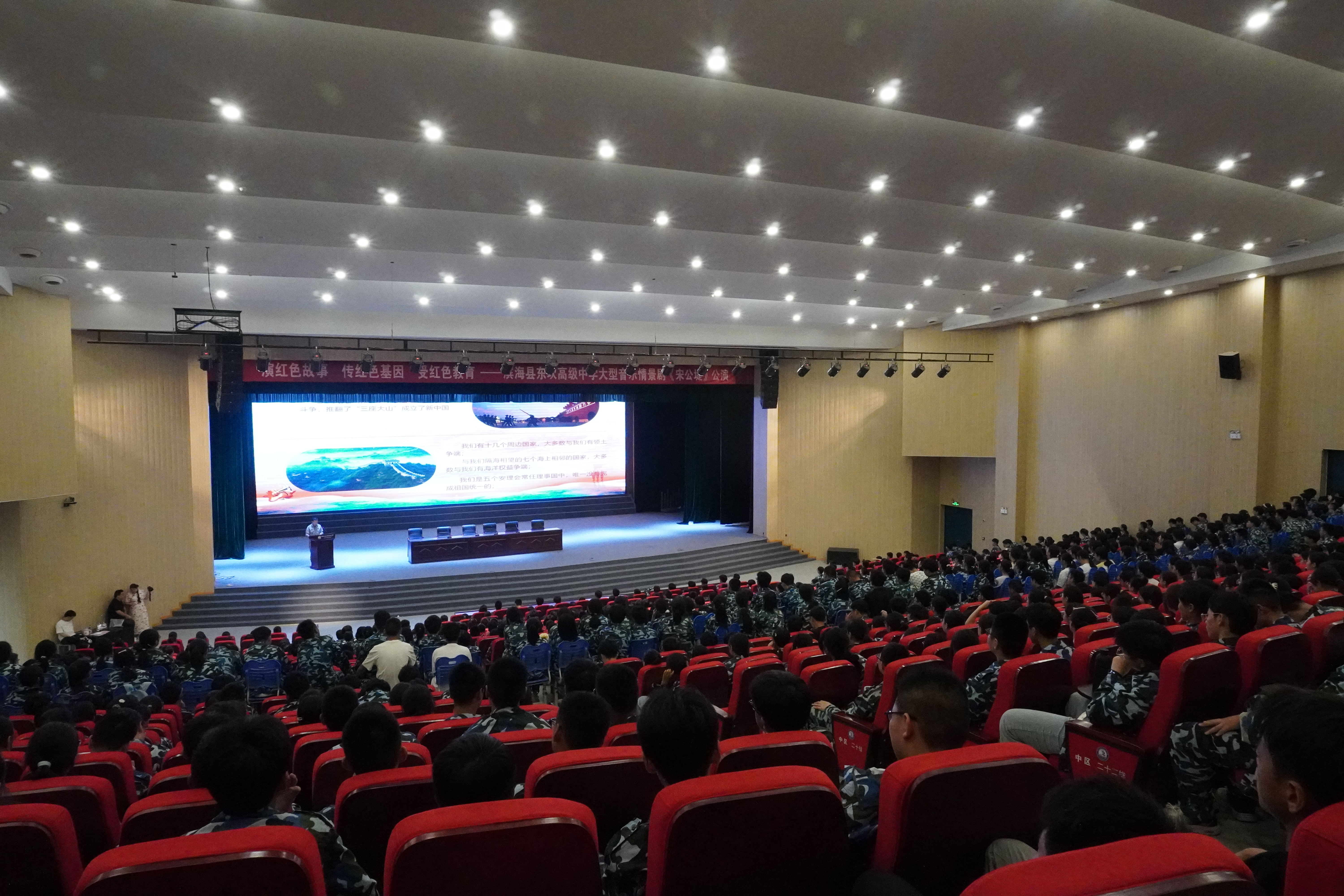 为深入普及国防知识,让同学们更加了解国防的重要性,增强爱国情怀,培养责任感和使命感。8月28日,滨海县退役军人事务局特邀请驻滨某部队杨指导员走进滨海东坎高级中学开展以“弘扬爱国精神,铸就国防力量”为主题的国防教育活动,用“红色精神”为刚刚结束军训的高一新生点亮“开学第一课”。
